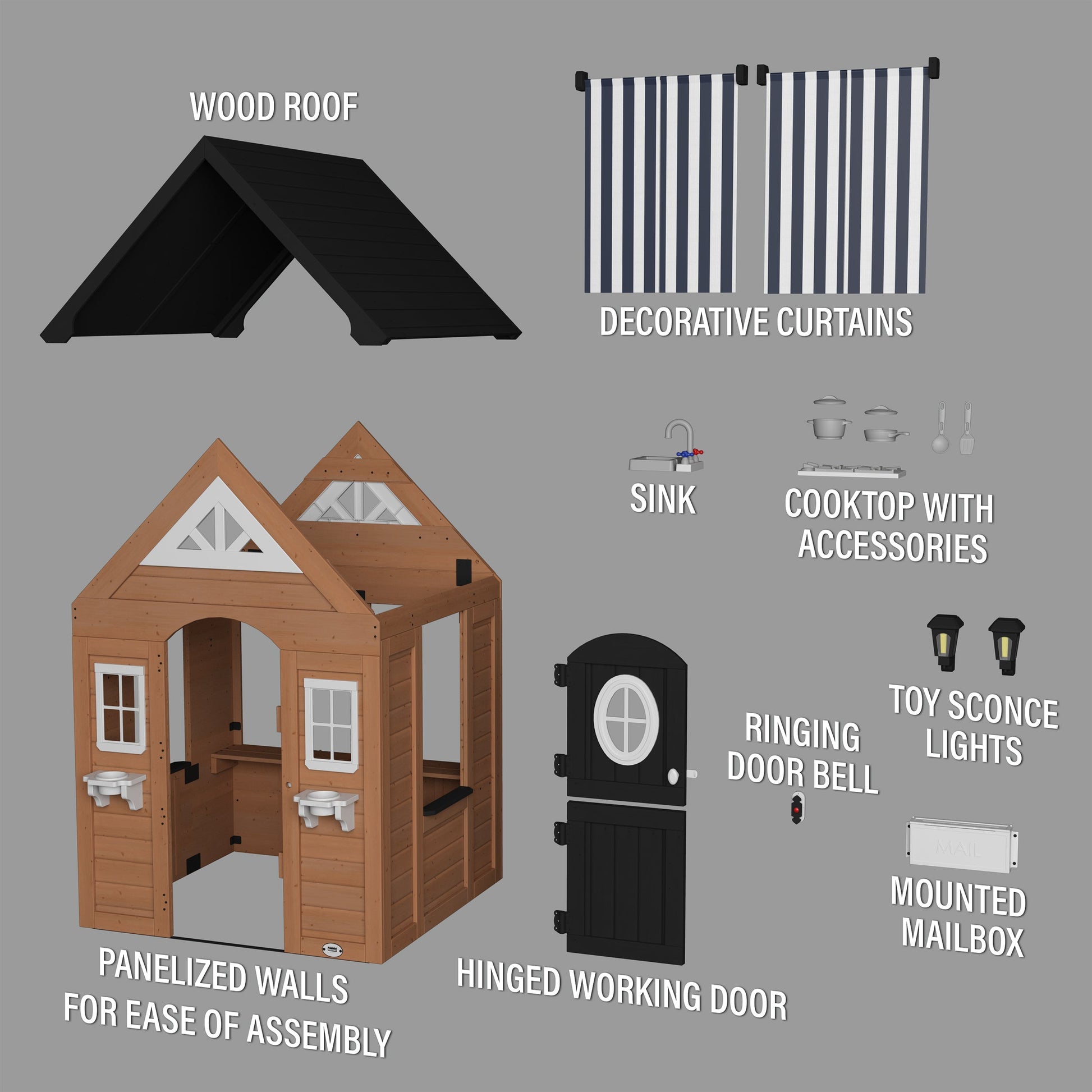 Inside, the Mystic Playhouse features a full play kitchen complete with toy cookware, inspiring pretend cooking, café play, and role-play games that keep kids engaged for hours. White-trimmed windows with curtains, adorable planters with included flowerpots, and a real working doorbell add thoughtful touches that make the space feel like a true miniature home. Whether they’re growing tiny flowers, hosting friends, or creating their own world of adventure, this wooden playhouse gives children a special place to learn, grow, and play all backed by SpaVida’s trusted partnership with Backyard Discovery.