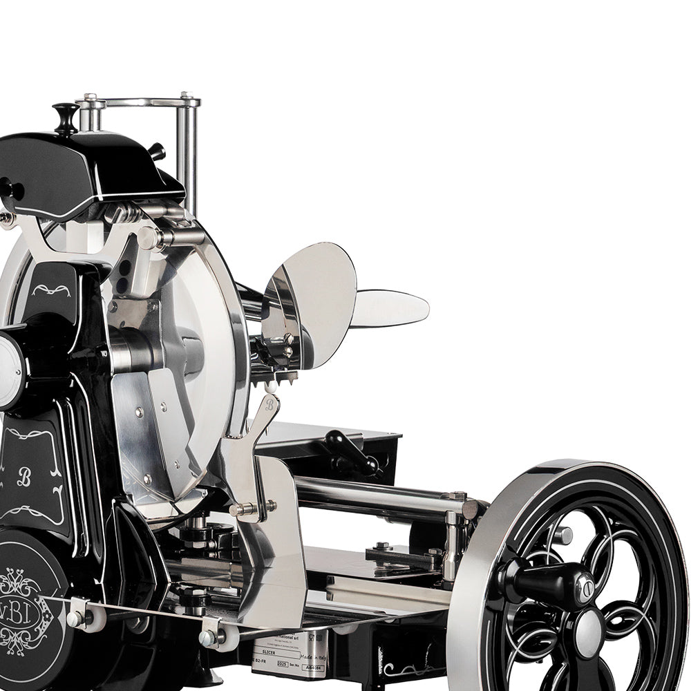 Bring a touch of classic sophistication and professional precision to your kitchen with the SpaVida Volano B2 Manual Flywheel Meat Slicer. The most compact member of the VBI Milano 1898 Volano family, the Volano B2 combines elegance with outstanding performance. Despite its 10.4-inch chromed steel blade, the slicer’s compact design allows easy placement in any kitchen, with the flywheel protruding only 1.3 inches below the work table for seamless use of lower drawers. Designed with meticulous attention to detail, it delivers the perfect cut while minimizing waste, making every slice a celebration of flavor. Optional pedestal accessories with art-nouveau-inspired decorations enhance its timeless appeal (sold separately).